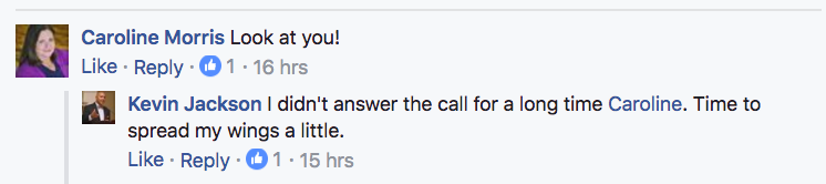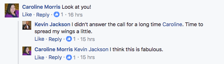 It was that same fear of the “what will people think if I put myself out there” that stopped me from doing it for a long time. Although he really didn’t owe Caroline an explanation, I thought Kevin’s answer was perfect. And guess what he got in response?