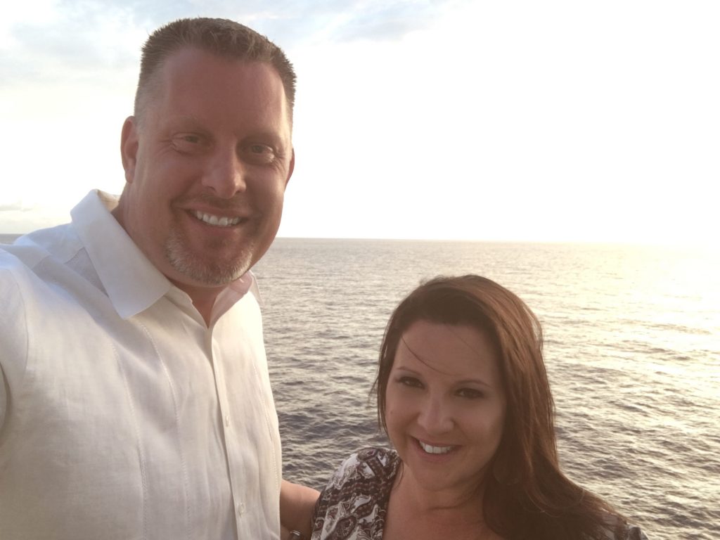 My name is Kim, and I love cruising. (But even if you hate cruising, this post is for you.) Here’s a quick shot of Ian “The Tall One” and me on our balcony.