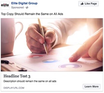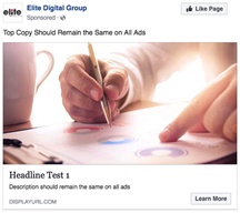 Step 2: Set up a Facebook ad campaign for engagement. Inside the ad set, create 5 versions of an ad leading to your opt-in page. Each ad should have the same top copy, the same image, the same link description… where the testing comes in is the headline. This is where you will try each of the 5 titles that you created. For the test, it doesn’t really matter what the name of the report is on the landing page.
